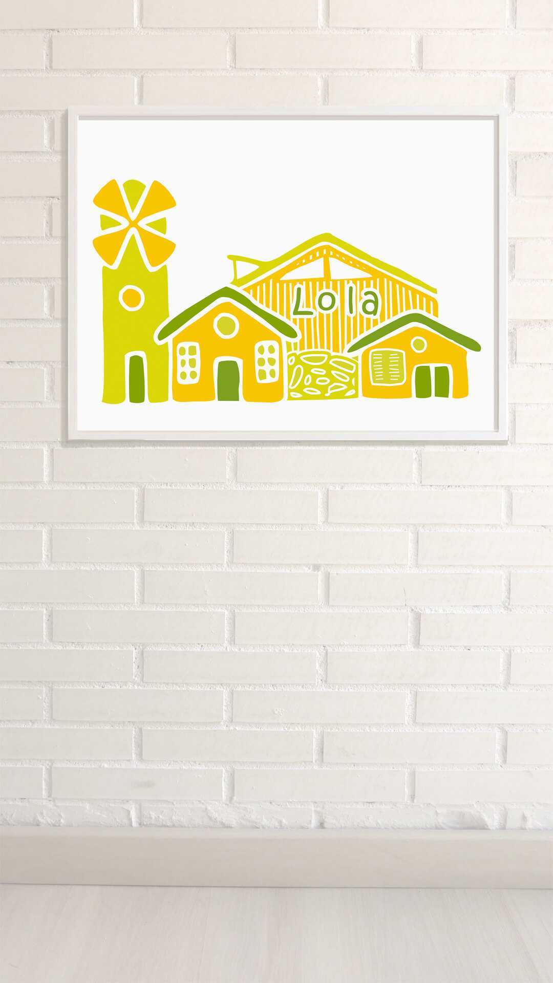 Decorate the children's bedroom with the name of your son and our colorful village, a unique decor that will not leave anyone indifferent.
