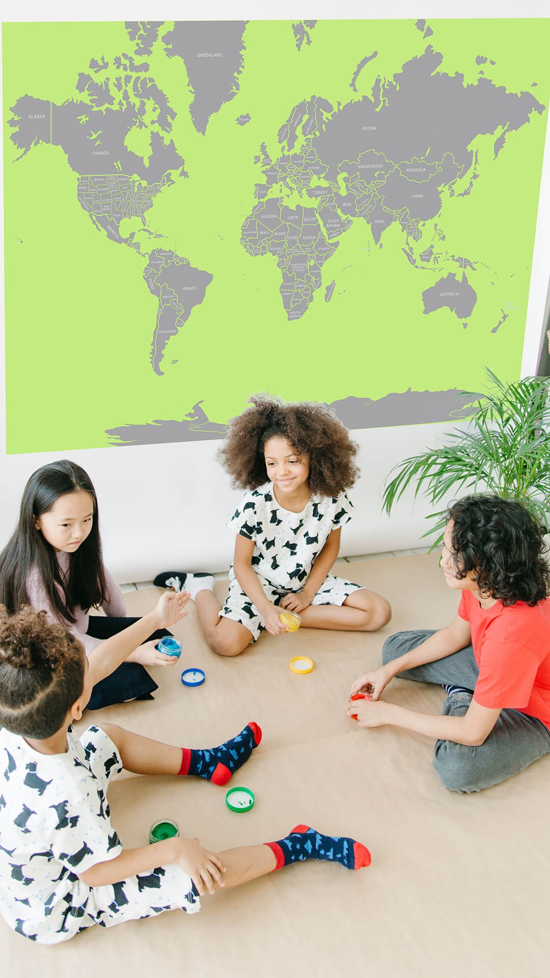 With the country names in Spanish,or English designed to decorate any room for kids or teens,