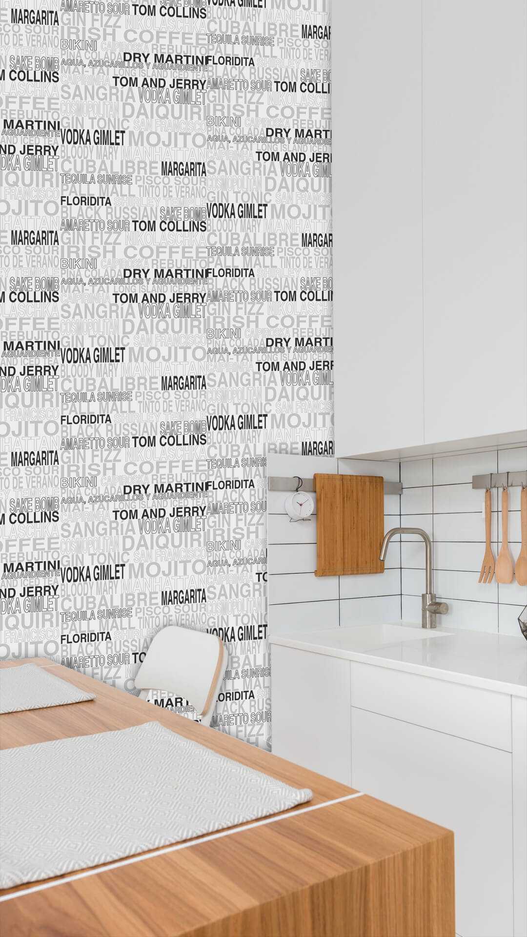 Decorate your walls with the names of the most famous and sophisticated cocktails, feel like drinking a caipirinha in Brazil in your own kitchen or a bloody mary at Manhattan at your living room.