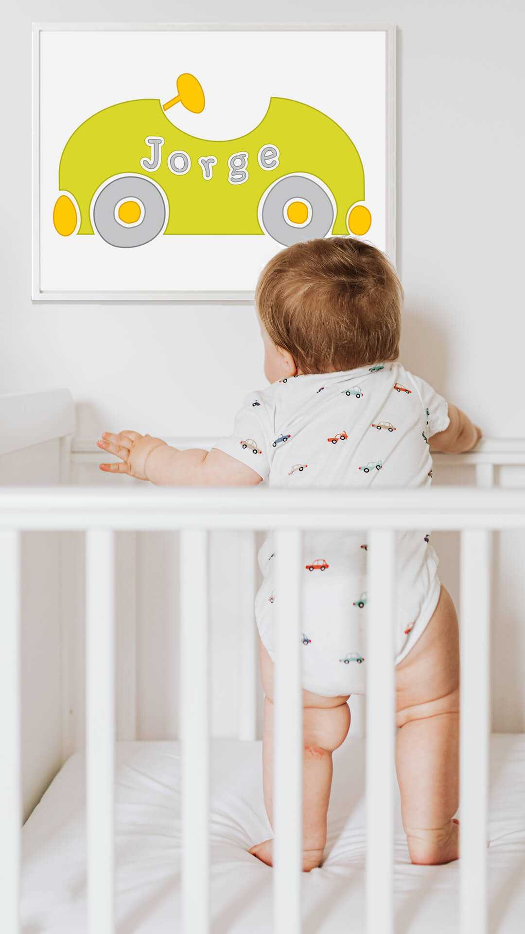 Customized vintage car print for your kids with their name in colors, a nice decoration that will surprise everybody. The perfect gift for kids and babies.