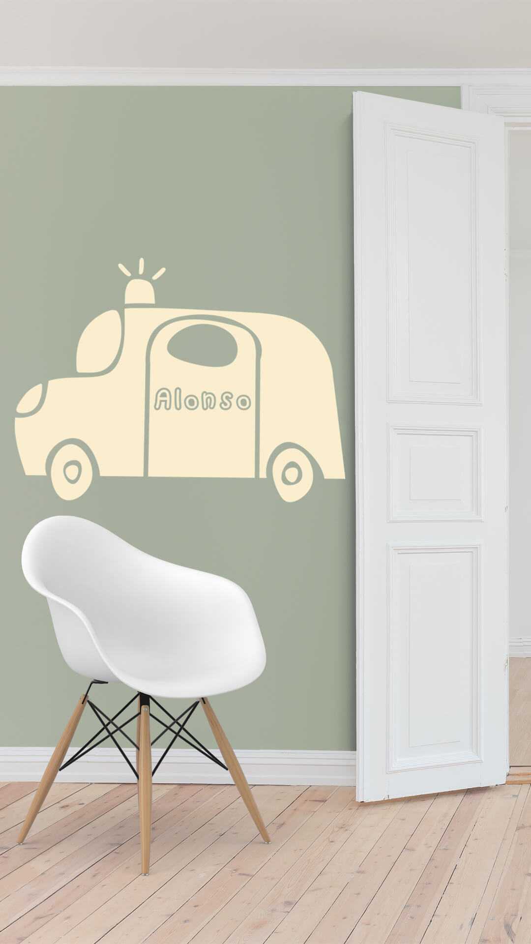 Do your kids love cars? Now they can have their own one, customized on their room wall with their name in colors.