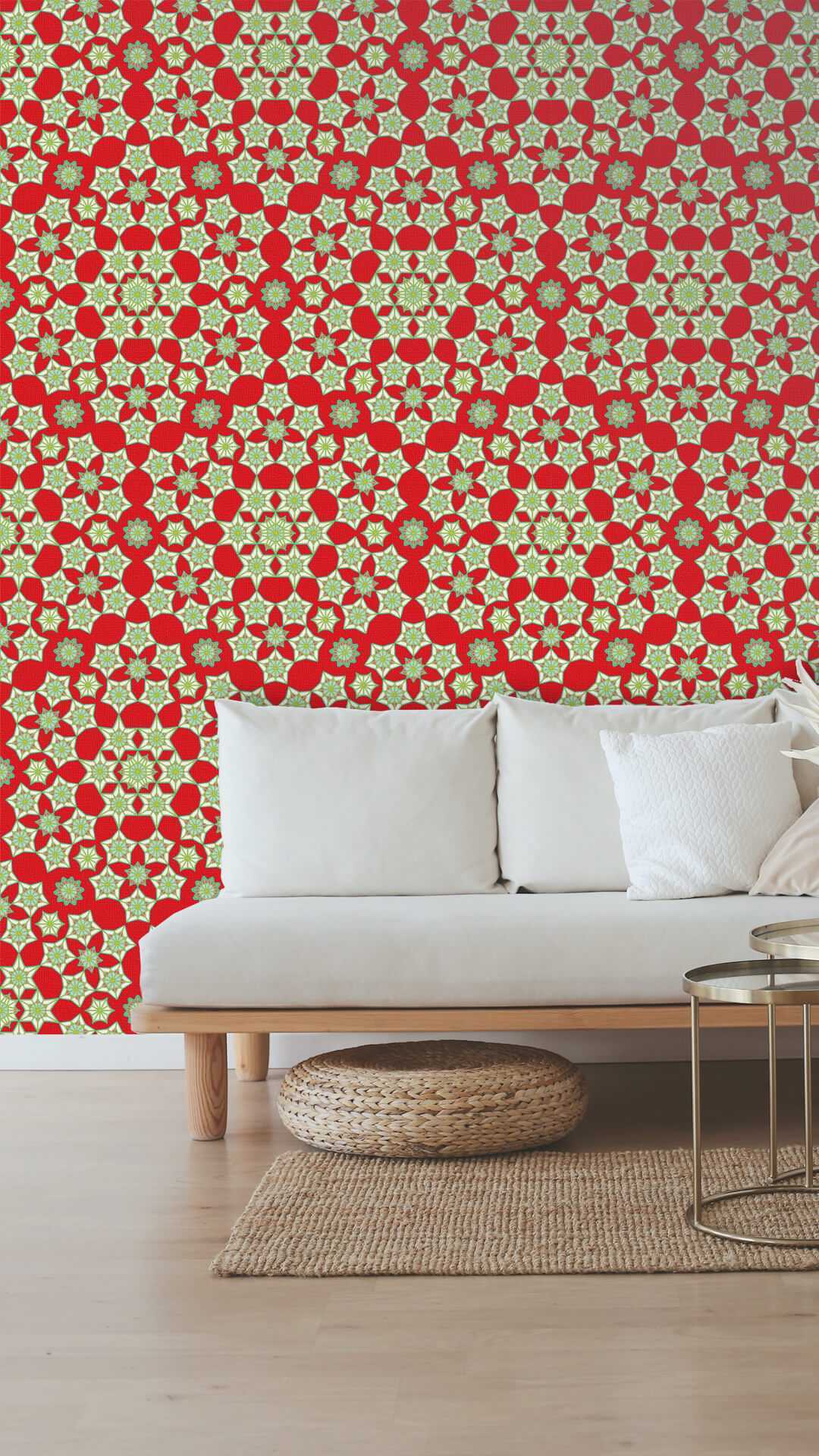 Our Caleidoscopic wallpaper pattern can be happy and casual, or elegant, it depends on the colors you choose, make the combination you choose, we send you a picture of how it is going to look for free!