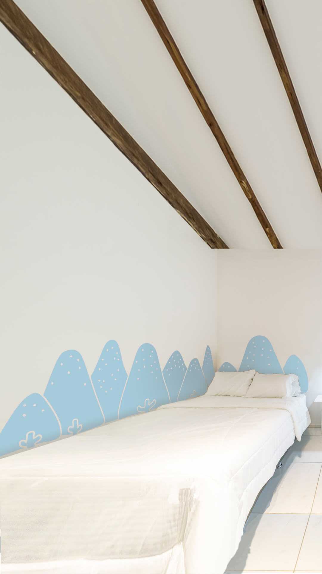 To decorate the wall next to the bed and prevent it from getting dirty quickly, we have created these wild forest.