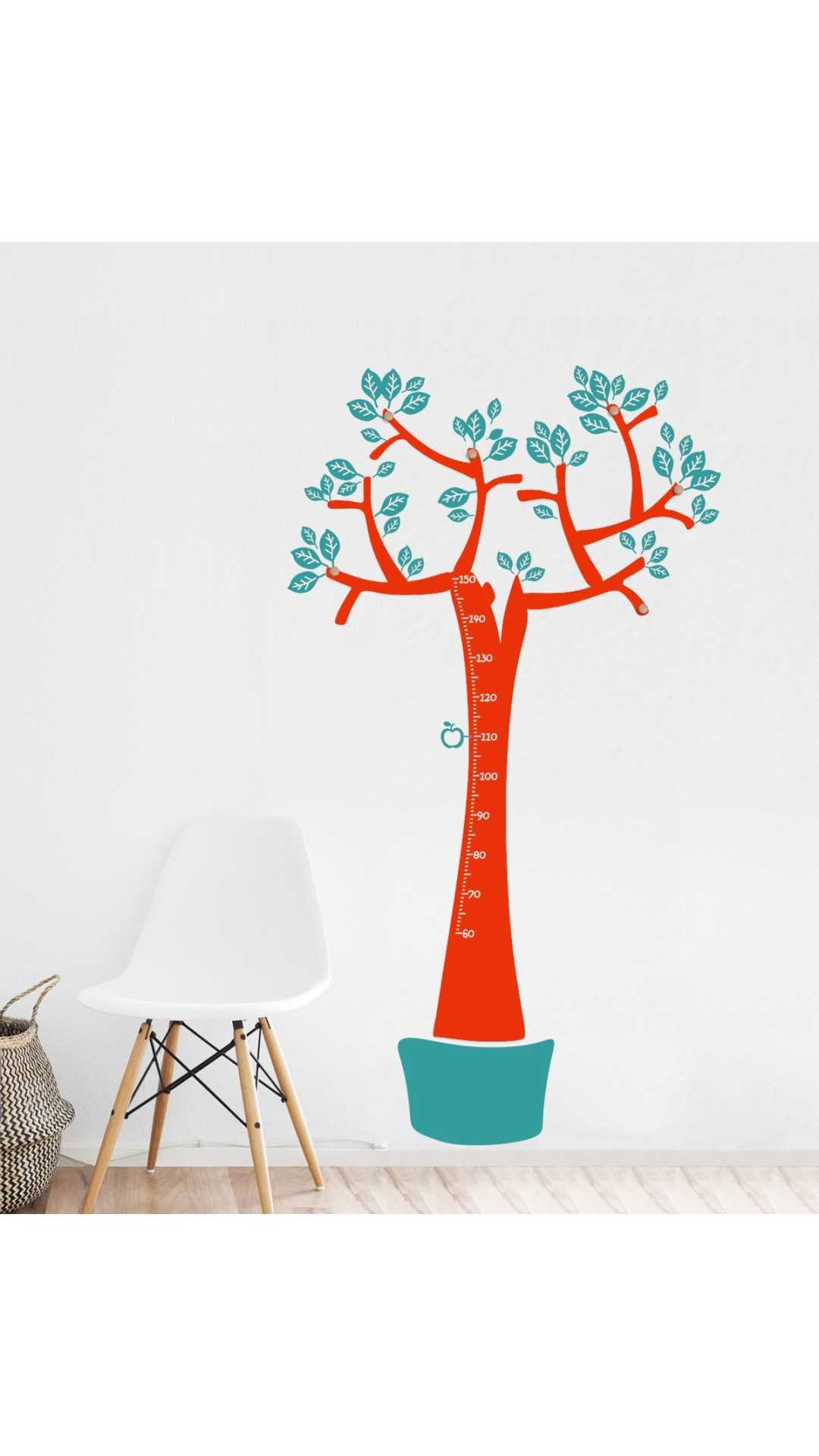 Decorate the walls of children with our tree that with your hangers will help you keep your room tidy and most importantly, with the 4 apples you can mark how much they grow.