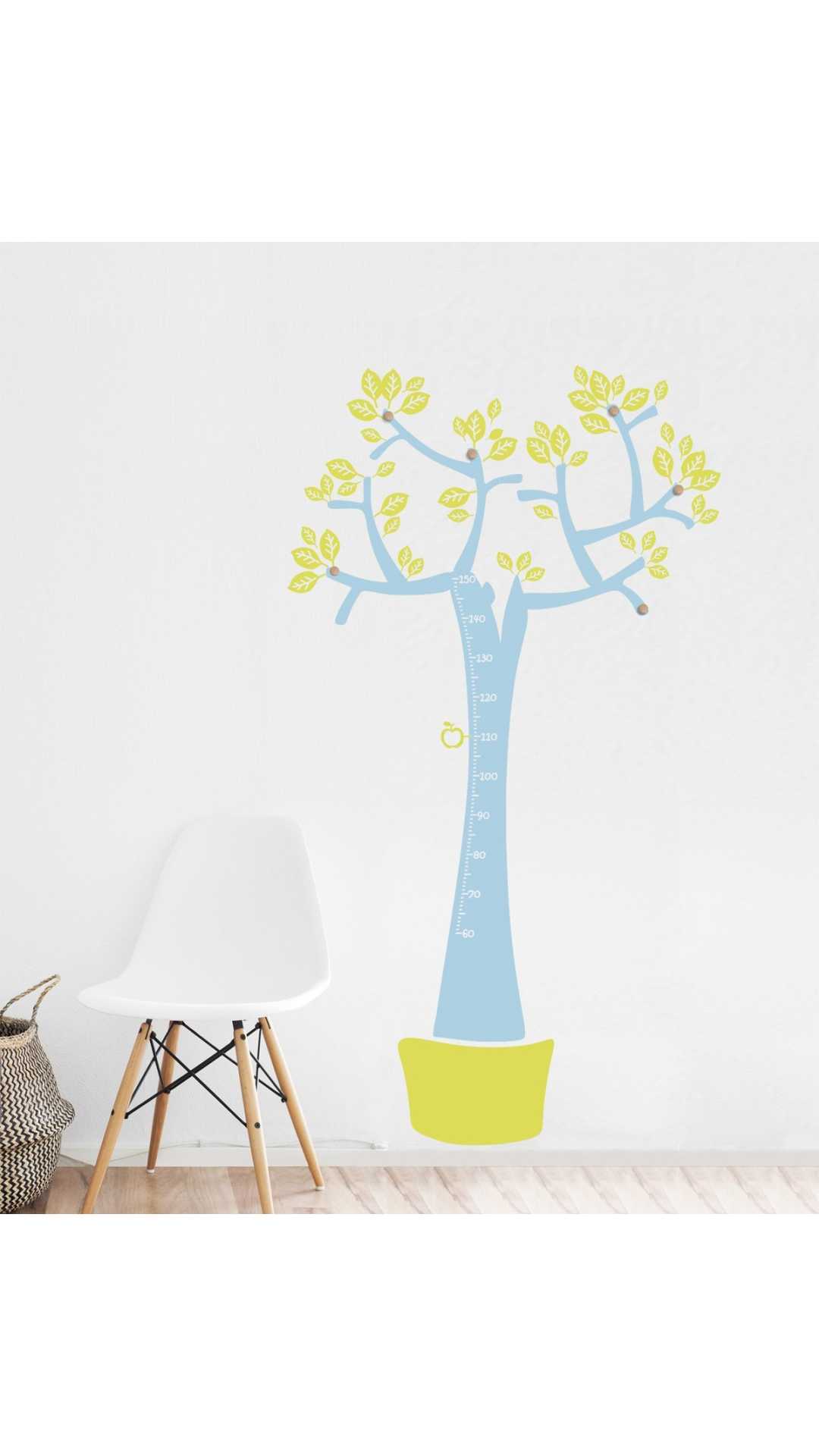 Decorate the walls of children with our tree that with your hangers will help you keep your room tidy and most importantly, with the 4 apples you can mark how much they grow.