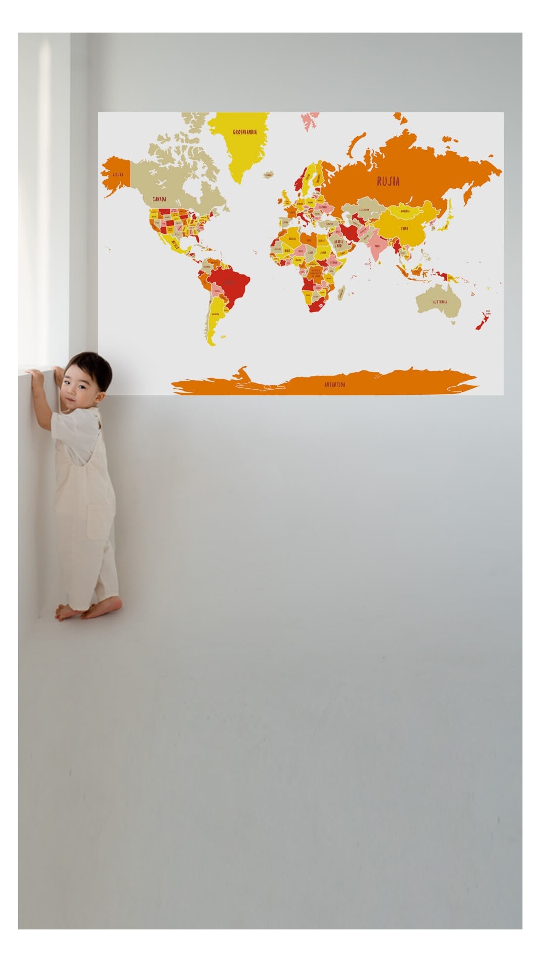 A special map with the names in English, designed to decorate any juvenile or children's room, so it will be useful to know where each country is and to learn it for your future trips!
