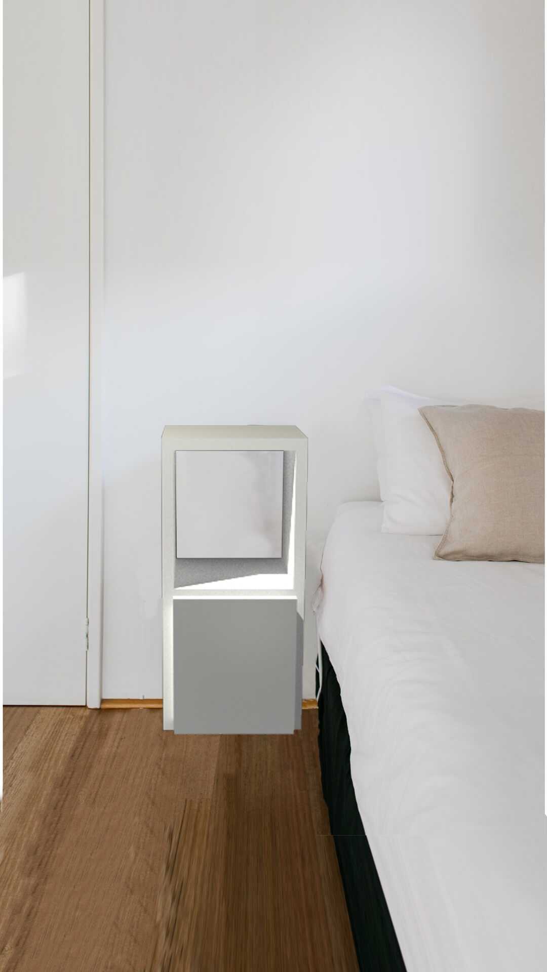 Bedside table with room enough for a lamp and those three or four  things you usually leave near you.
